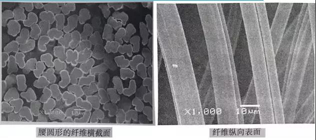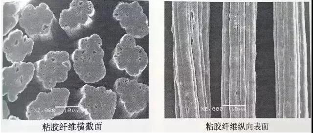 普通粘膠纖維復雜成型過程的不均勻性會使常規(guī)粘膠纖維的橫截面呈腰圓形或無規(guī)則狀,內(nèi)部有孔洞,縱向有無規(guī)則溝槽。粘膠具有優(yōu)良的吸濕性、易染性,但是其模量、強度較低,尤其是濕強度低。