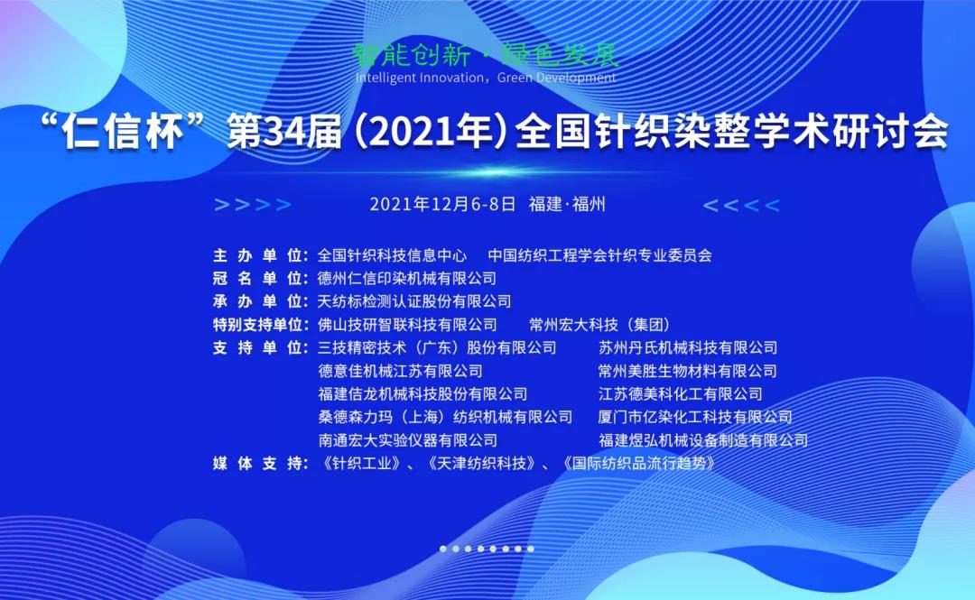 由全國(guó)針織科技信息中心和中國(guó)紡織工程學(xué)會(huì)針織專業(yè)委員會(huì)聯(lián)合主辦,天紡標(biāo)檢測(cè)認(rèn)證股份有限公司承辦,德州仁信印染機(jī)械有限公司冠名的“仁信杯第34屆(2021年)全國(guó)針織染整學(xué)術(shù)研討會(huì)”于2021年12月6-8日在福建省福州市圓滿落下帷幕。