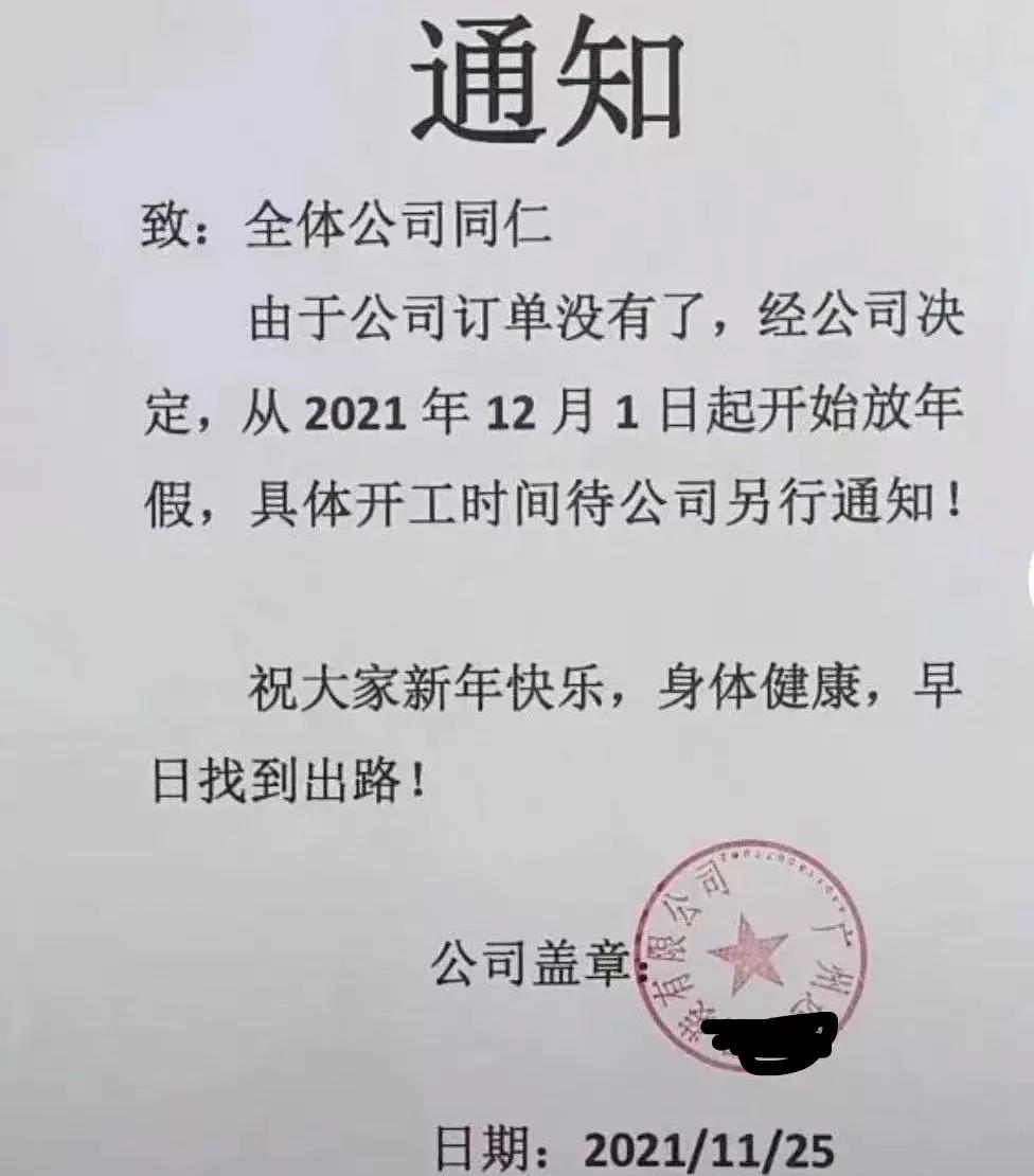 12月才剛開始,近日,廣東一服裝廠家發(fā)布通知:放假!