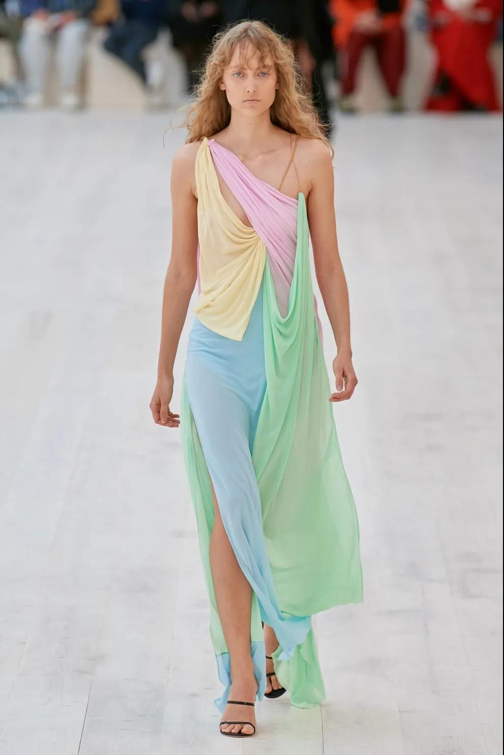 本季的主要趨勢之一是薰衣草。Jil Sander、Loewe、Givenchy 和 Jonathan Simkhai 只是在其系列中使用它的幾個品牌。薰衣草色的外套和連衣裙、針織毛衣和針織套裝。下一季仔細研究柔和的顏色,其中還包括薰衣草。這種柔和的紫色色調最好與藍色、淡黃色和綠色混合,就像在 Loewe 和 Rodarte 系列中一樣。