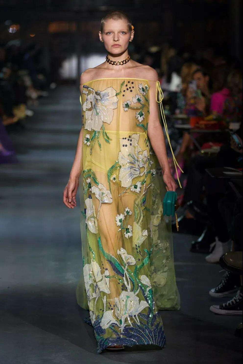 半透明的“裸”裙也許是明年春天最熱門的趨勢。面料再次在視覺感知中發(fā)揮決定性作用。Alberta Ferretti、Fashion East、Givenchy 和 Valentino 的造型就是證明。