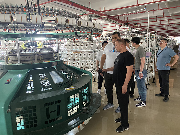 近日,來自海外的客戶應(yīng)邀到漢馬大圓機生產(chǎn)車間進(jìn)行實地考察,公司負(fù)責(zé)人高海彬、王偉明等人熱情接待遠(yuǎn)道而來的客人。