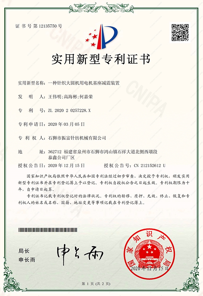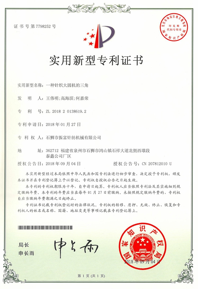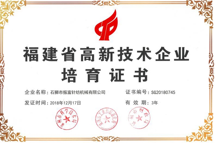 石獅市振富針紡機(jī)械有限公司成立于2003年11月03日,專業(yè)從事緯編針織大圓機(jī)設(shè)計(jì)及制造的研發(fā)型公司,企業(yè)具備雄厚的產(chǎn)品研發(fā)和制造能力。自有廠房并配備了研發(fā)專用實(shí)驗(yàn)室,每年研發(fā)投入數(shù)百萬元,現(xiàn)有發(fā)明專利兩項(xiàng),實(shí)用新型專利總計(jì)七十余項(xiàng),真正實(shí)現(xiàn)研發(fā)與生產(chǎn)相結(jié)合,將技術(shù)成果轉(zhuǎn)換并應(yīng)用到實(shí)踐中來;獲得“國(guó)家高新技術(shù)企業(yè)”、“科技小巨人領(lǐng)軍企業(yè)”、“省科技型中小企業(yè)”,“金牌設(shè)備供應(yīng)商”等殊榮。