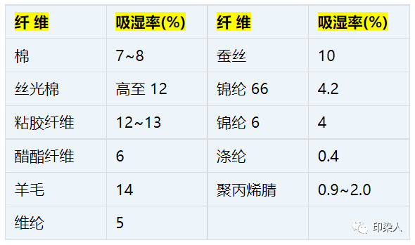 表 3 一些纖維的吸濕率(相對濕度 65%,溫度20℃)