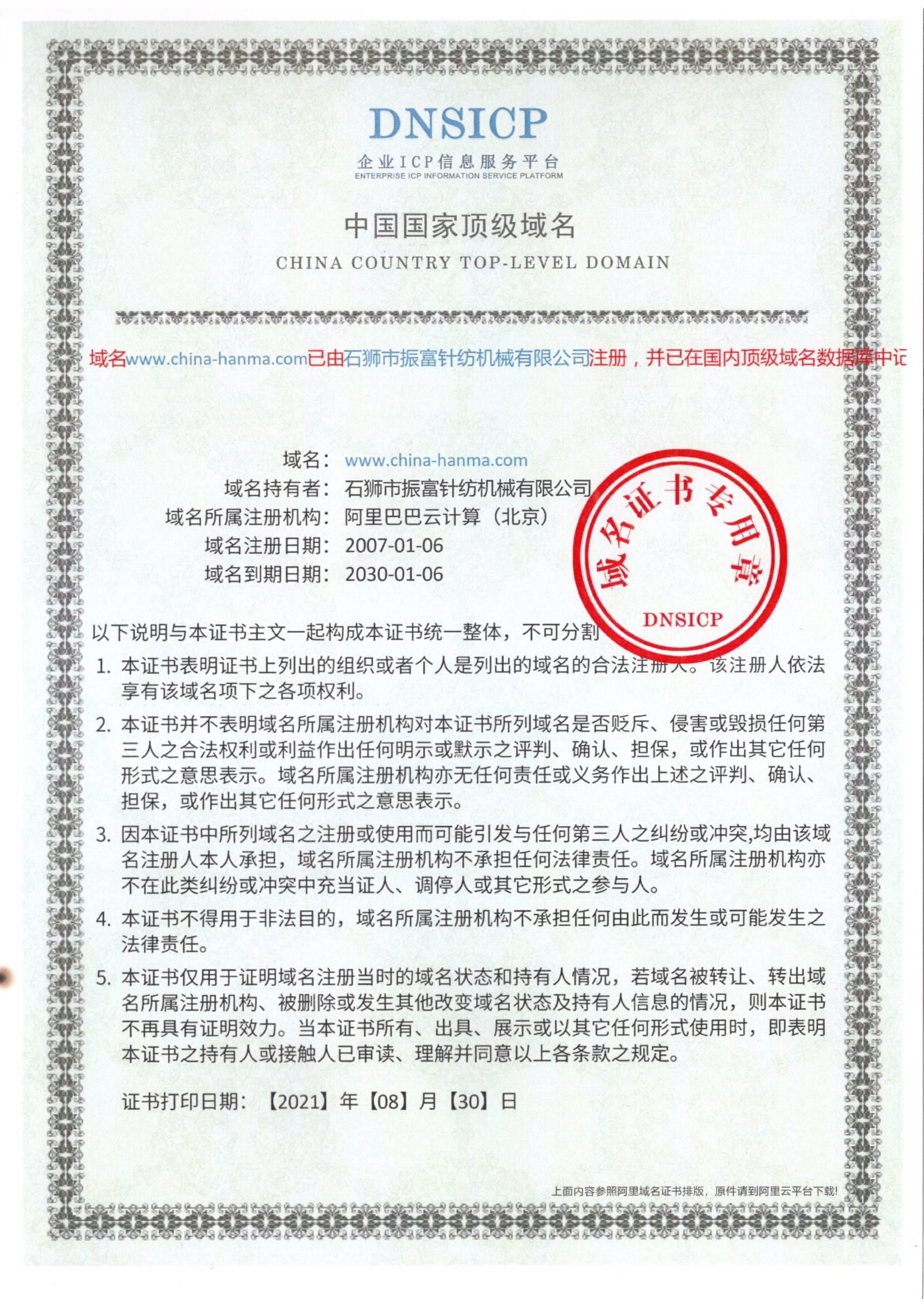 域名持有者:石獅市振富針紡機(jī)械有限公司