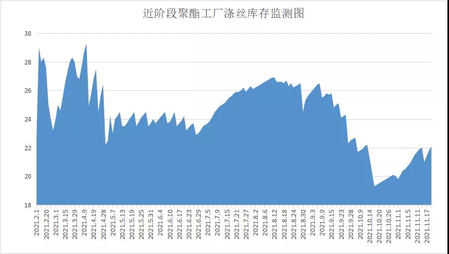 雖然目前聚酯工廠庫存并不是很高,但10月下旬以來,山東、河南、江蘇等地拉閘限電舉措全面放松直至取消,產(chǎn)能迅速恢復(fù)并釋放,部分中小企業(yè)累庫率不斷升高,運(yùn)轉(zhuǎn)資金被占壓。同時(shí)進(jìn)入年底,紡織企業(yè)現(xiàn)金流需求加大,需要支付零配件、水電費(fèi)、工資、獎金、貸款及利息,部分企業(yè)采取拋庫存、快變現(xiàn)等手段維持生產(chǎn)。對于原料采購的欲望將變得更加謹(jǐn)慎。因此整體來看,目前市場缺乏利好消息,并不具備大量備貨的天時(shí)地利人和之有利因素。