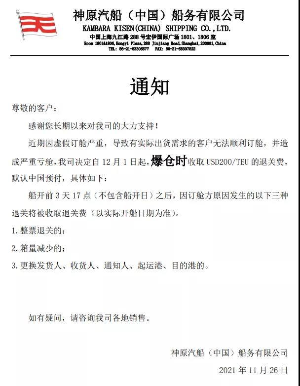 其他船公司征收情況請(qǐng)?jiān)斣儗?duì)應(yīng)船公司。收取虧艙費(fèi),在未來(lái)可能也是趨勢(shì),成為硬性成本,所以請(qǐng)拿到艙位的朋友們務(wù)必珍惜!