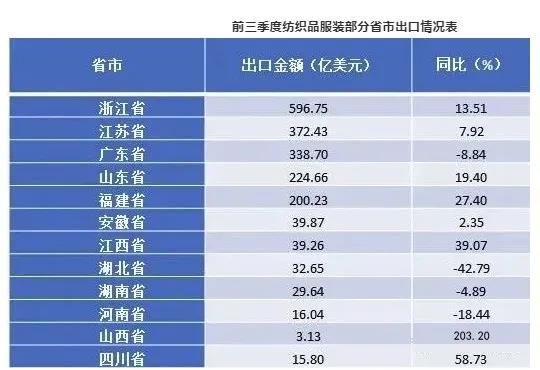 而不容忽視的是,今年以來(lái),在江浙地區(qū)服裝出口迎來(lái)穩(wěn)步增長(zhǎng)的同時(shí),中西部省市出口表現(xiàn)卻異常突出。據(jù)測(cè)算,1-9月,我國(guó)西部地區(qū)出口紡織品服裝123.7億美元,同比增長(zhǎng)23.9%,占我國(guó)紡織品服裝出口市場(chǎng)的5.4%;