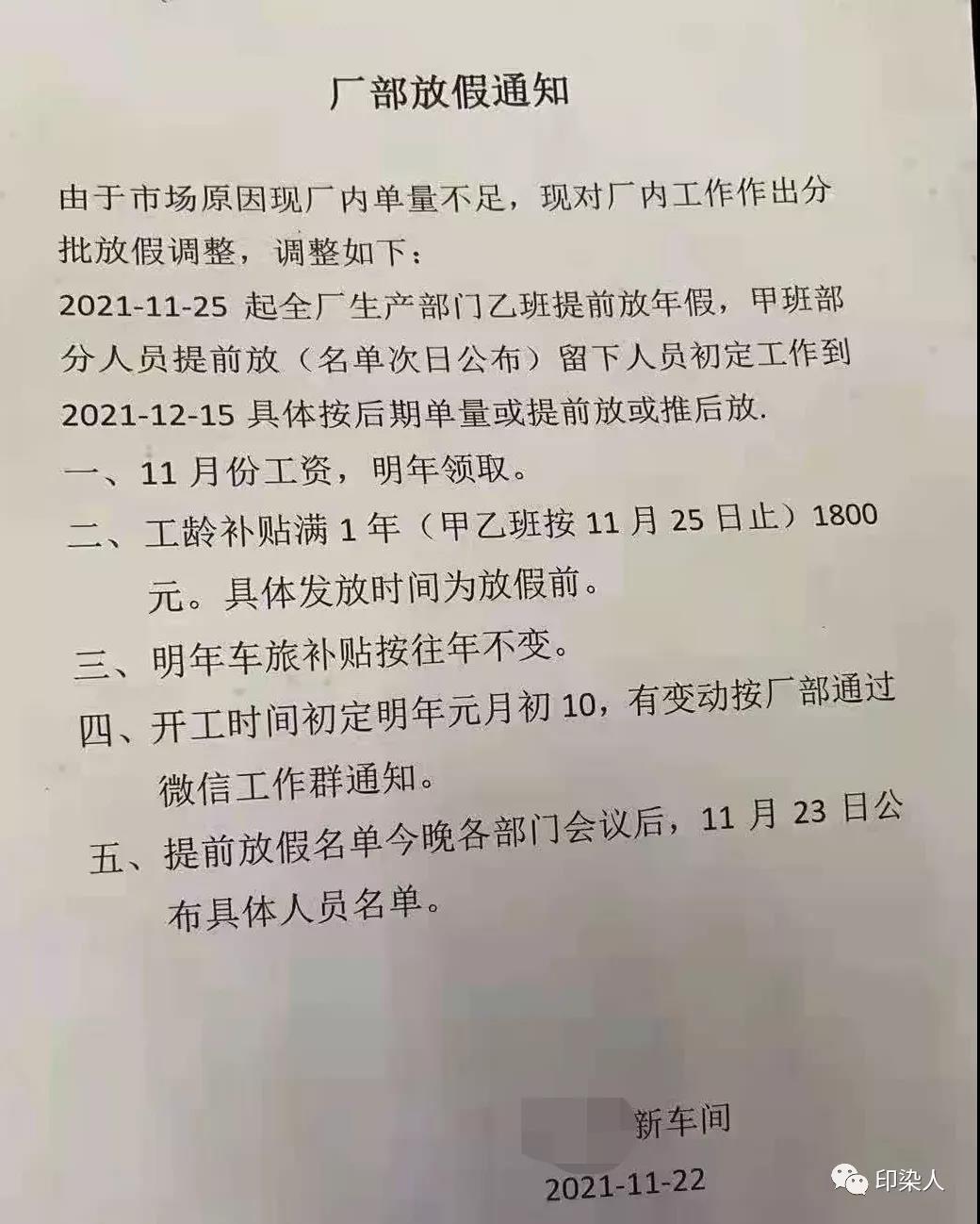 11月即將結(jié)束,意味著離過年越來越近,照往年慣例,臨近12月過年,下游行情收緊,訂單量減少,很多工廠為了節(jié)省成本,會提前選擇開啟放假模式。